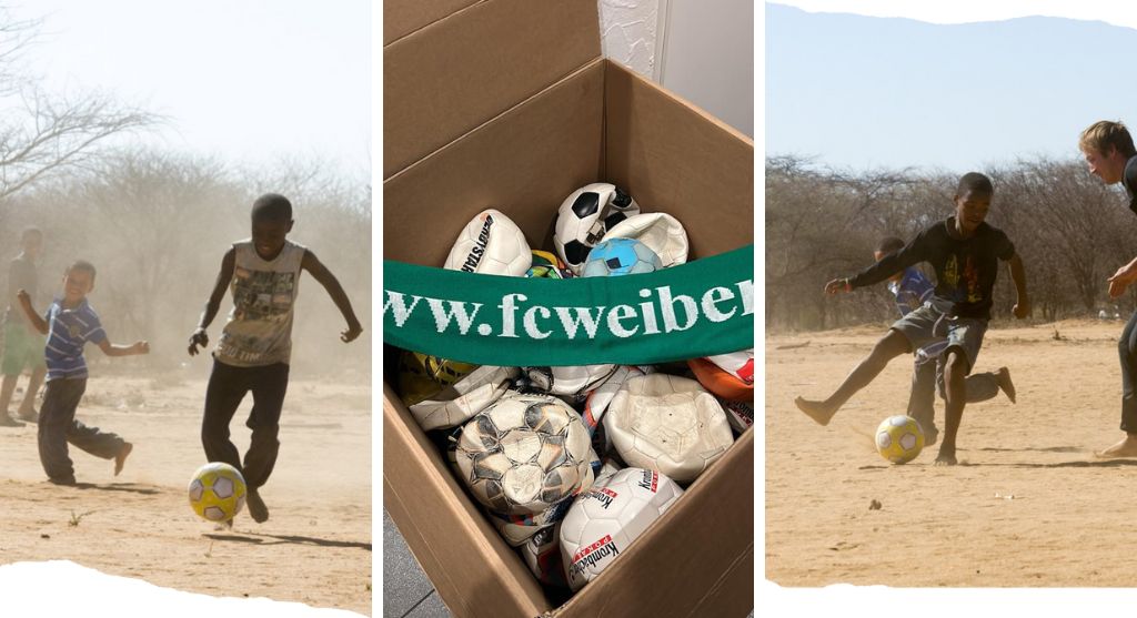 Irgendwann im letzten Jahr standen Matthias und Nils ganz unkompliziert vor der Haustür – mit einer tollen Idee und einem vollen Kofferraum. Darin: über 60 Fußbälle, zwei Ballpumpen, ein Schal und ein Pokal des FC Weiberg. Diese Spende machte sich kurze Zeit später auf den Weg nach Malawi und Namibia. Dort bekamen die Bälle ein zweites Leben!
